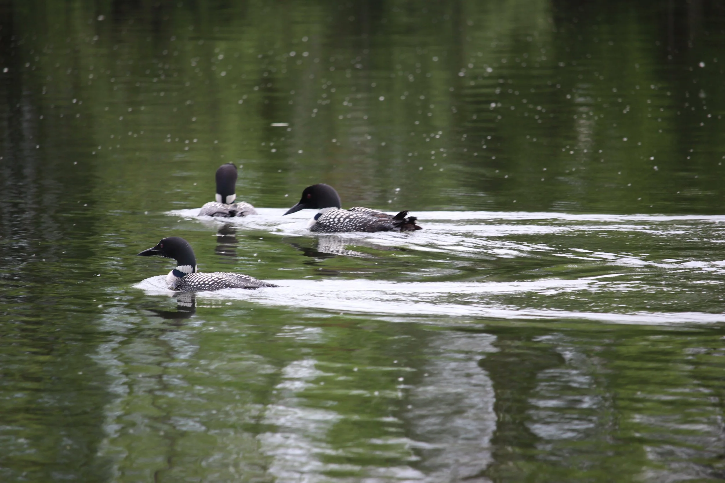 These three loons kept each other — and all of us - company throughout the summer, flying off to wintering grounds in Mexico in late September. We had a loon nest this spring with 2 eggs, but no hatchlings.